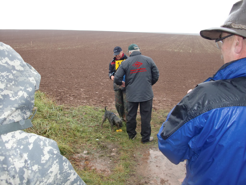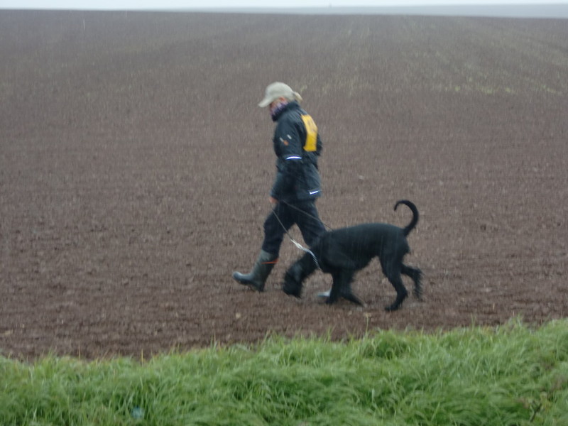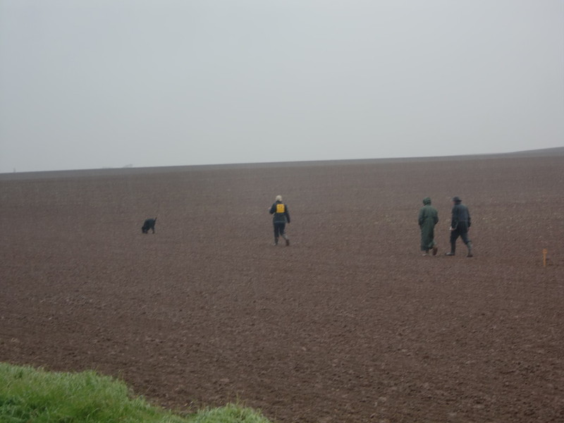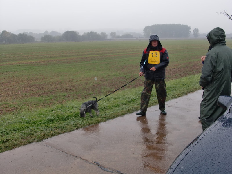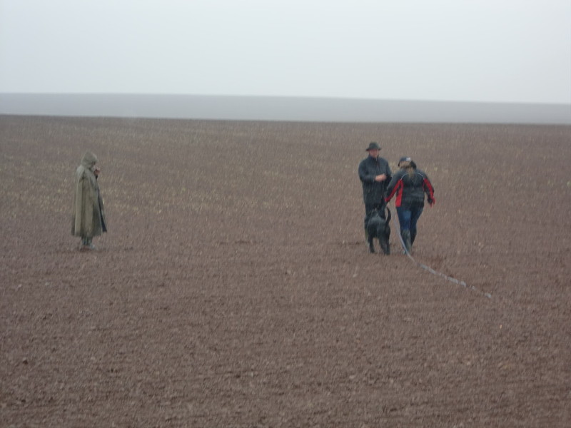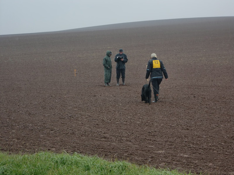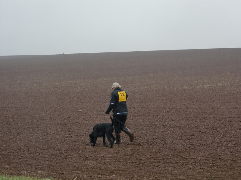 Pünktlich zum Fährtenlegen am Samstag fing es sehr stark an zu regnen und es hörte den ganzen Tag nicht wieder auf damit. Das hieß für Hund und Herrchen erschwerte