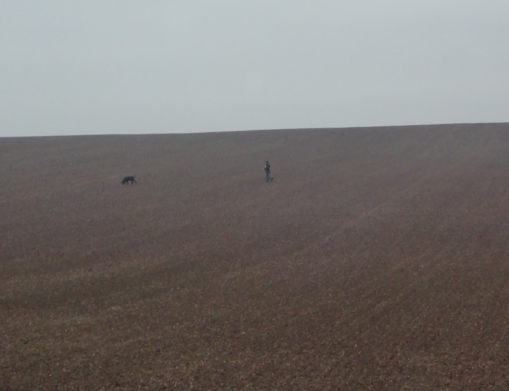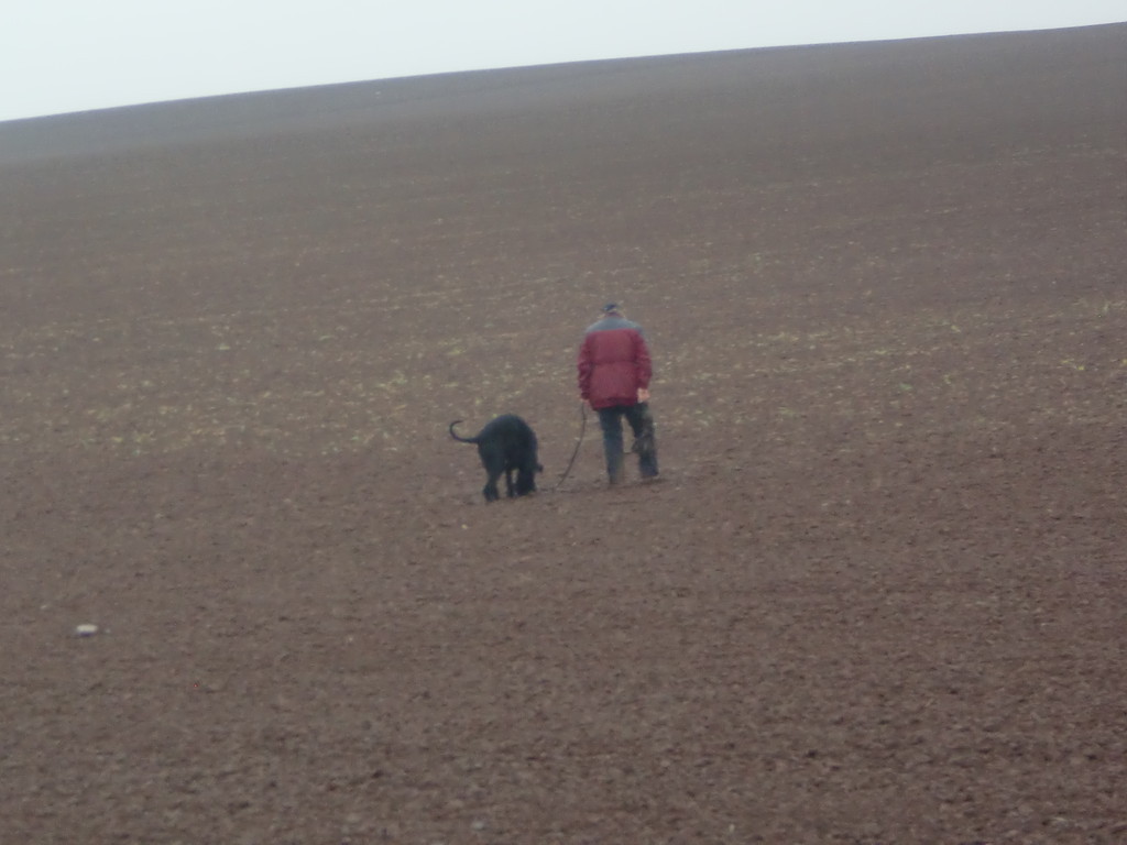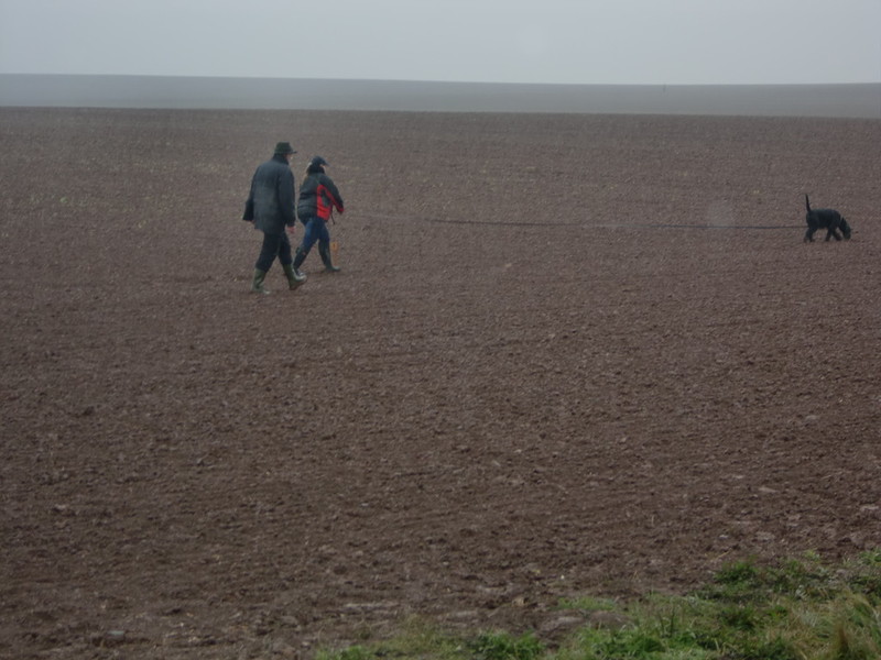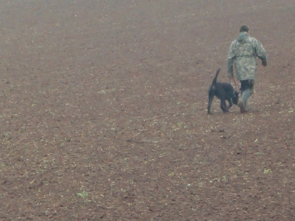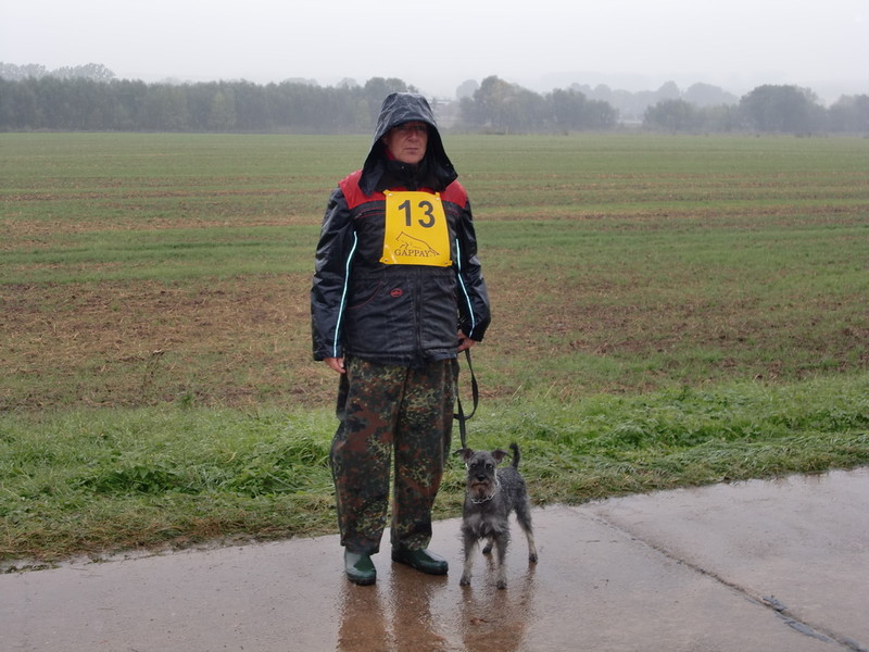 Pünktlich zum Fährtenlegen am Samstag fing es sehr stark an zu regnen und es hörte den ganzen Tag nicht wieder auf damit. Das hieß für Hund und Herrchen erschwerte